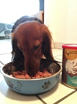 Sindsdien is Eddi dol op zijn voer en is zijn bakje snel leeg.